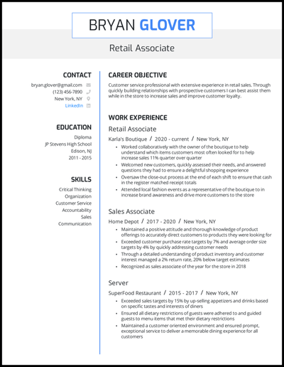Simple Resume Examples For Retail : Sales Associate Resume Sample 2021 Writing Tips Resumekraft / Here's an example of a strong resume summary in paragraph format:. Resume examples for every job title. Whether you're a first time job seeker or a seasoned applicant, we have what you need to improve your resume and prepare for the fierce competition of the job market. It takes experience, leadership skills, and a great resume. May 05, 2021 · 15+ it skills to list on your resume in 2021 (with examples) it is a massively growing industry with tons of potential for professional growth. Here's an example of a strong resume summary in paragraph format: